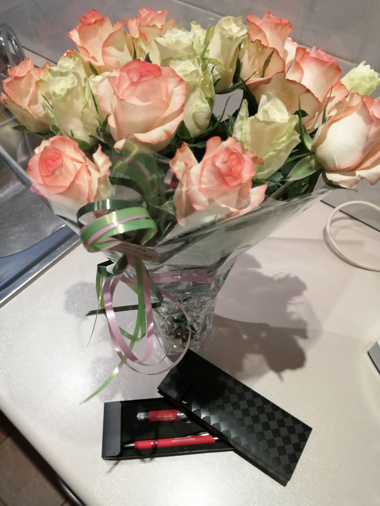 Deze heerlijke ruiker staat nu natuurlijk mooi te pronken op mijn bureau ❤